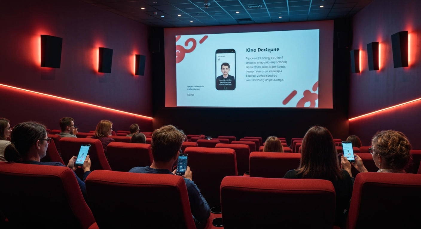 W sali kinowej uruchom aplikację Kino Dostępne na swoim telefonie i wybierz odpowiednią ścieżkę dźwiękową dostępną dla filmu. Dostępne opcje obejmują ścieżki oznaczone jako AD – seans z audiodeskrypcją oraz L – seans z lektorem.